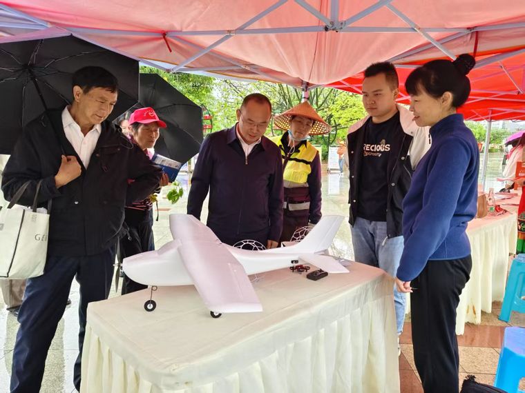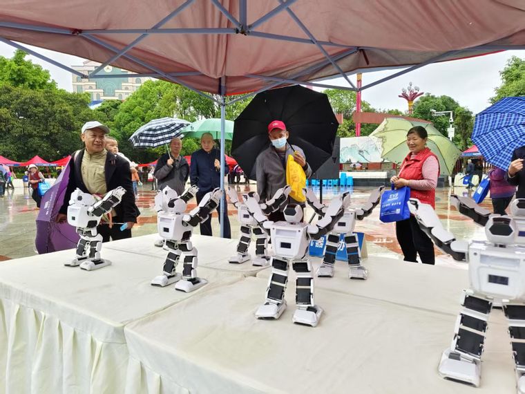 本次活动周以“矢志创新发展,建设科技强国”为主题,旨在通过开展群众性科学技术活动,激发全社会创新创造活力。活动现场布置了科学知识展板,各参展成员单位设置了科技创新成果展示摊位。尽管天空下起了 绵绵细雨, 还是有不少群众被整齐舞动的机器人、结构精密的无人机等展品所吸引。各展位工作人员忙着向群众发放科普手册、介绍科创展品,推动科技成果从实验室走向社会公众。