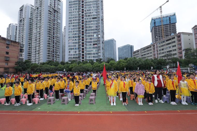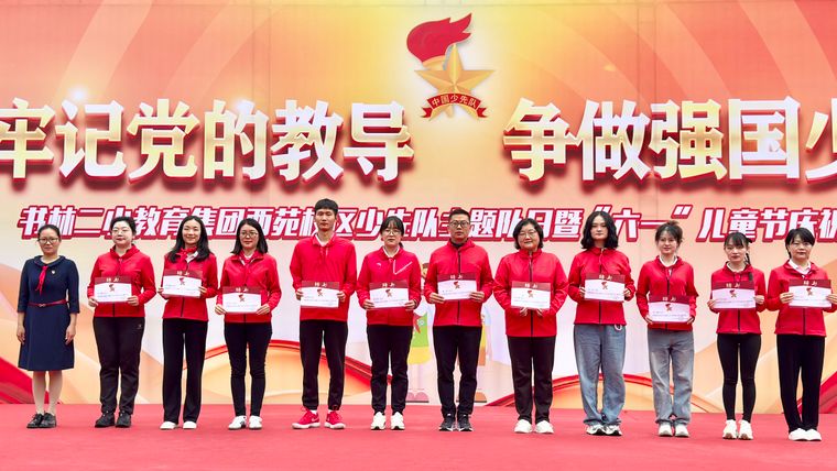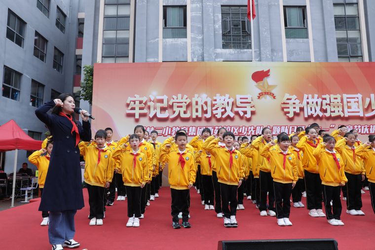 书林二小教育集团西苑校区的73小学生在优秀少先队员代表的引领下,戴上了鲜艳的红领巾,正式加入中国少年先锋队,他们脸上洋溢着自豪与喜悦。