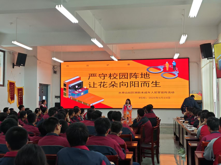 5月23日下午,水井山社区妇联邀请杨涛律师走进正道私立中学,开展“严守校园阵地让花朵向阳而生”未成年人法律知识讲座。杨律师分析案例,讲授违法犯罪类型、原因及预防方法,组织趣味问答。社区将持续开展利剑护蕾系列活动。