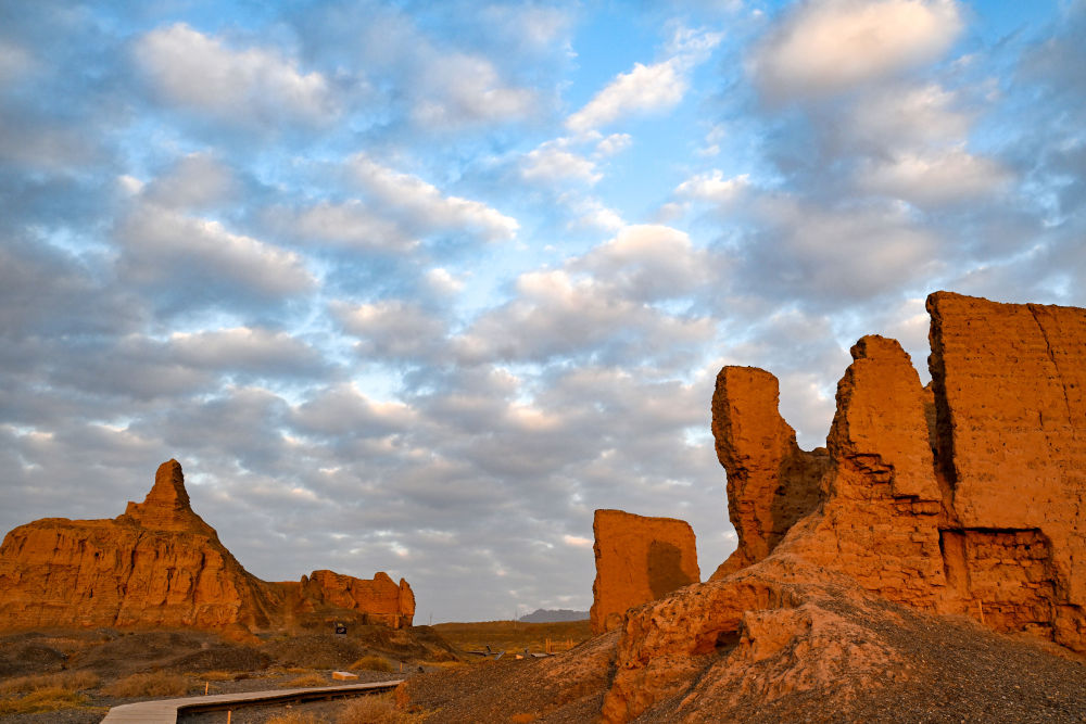 ↑清晨的苏巴什佛寺遗址(2024年10月31日摄)。苏巴什佛寺遗址位于新疆维吾尔自治区阿克苏地区库车市,始建于公元3世纪,是天山南麓古龟兹地区的重要佛教建筑群遗址,2014年作为“丝绸之路:长安-天山廊道的路网”的组成部分被列为世界文化遗产。新华社记者 陈朔 摄