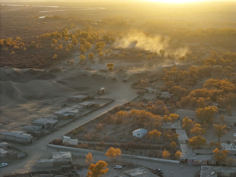 ↑这是2024年11月5日拍摄的新疆于田县达里雅布依旧址景区一角(无人机照片)。新华社记者 胡虎虎 摄