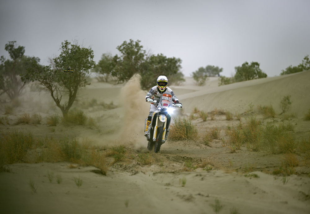 ↑6月1日,鼎新铜业沸铁拉力车队车手张仟岳佟在第十赛段比赛中。新华社记者 辛悦卫 摄