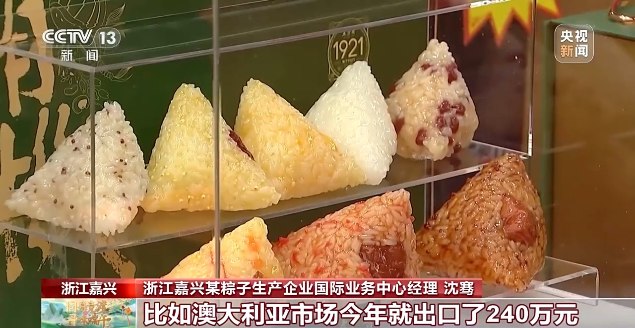 浙江嘉兴某粽子生产企业国际业务中心经理 沈骞:今年,我们开发了纯植物馅料的素食粽子、低糖粽等细分品类,今年以来已经累计出口了250余万只粽子。东南亚是主要市场,我们还开拓了加拿大、澳大利亚、新西兰等10多个国家和地区,比如澳大利亚市场今年就出口了240万元,增长比较明显。