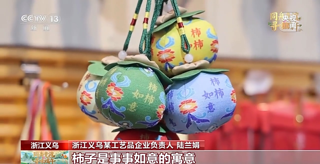 义乌某工艺品企业负责人 陆兰娟:今年,在香囊的外观设计上面,我们结合了中国传统节日祝福的元素,设计了立体葫芦、柿子等款式。像葫芦的形状有福禄的意思;柿子有事事如意的寓意,都是今年的“爆款”。