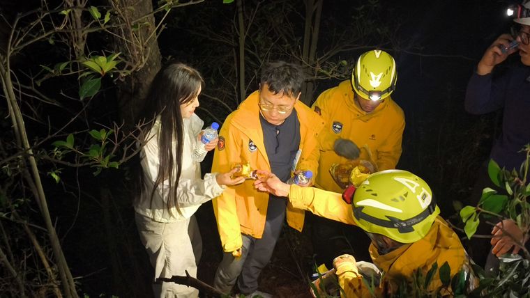稍作休整后,救援人员采取“前导后护”的队形,护送两名被困人员开始向山下转移。6月5日凌晨2时15分,救援人员成功将被困游客安全护送至山下,并移交给现场等候的苍山派出所工作人员进行后续处置。