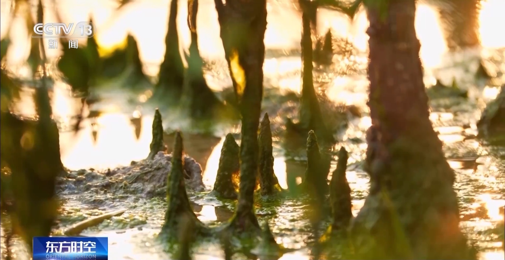 而在陆地与海洋交界处,有一种特殊的湿地类型,那就是被誉为“海岸卫士”的红树林。在中国,它分布在广东、广西、福建、海南和浙江等沿海省份,是鱼虾、昆虫、植物栖息的家园,也储存大气中多余的碳。划定范围、多样修复、强化监管,随着红树林的系统保护在沿海省份有序展开,目前我国红树林面积已经恢复增长至3万多公顷,成为世界上少数红树林面积增长的国家之一。