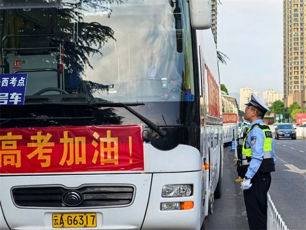 为确保高考顺利进行,昆明公安执勤警力一大早就守候在各个考点,确保考点及周边交通、治安秩序平稳有序。警方根据实际路况,安排警车护航考点接送车辆,同时,加强考点周边巡逻防控和交通管制,及时查处交通违法行为,采取区域禁鸣、路段限速、车辆限行等措施,确保高考期间道路通畅、秩序良好。