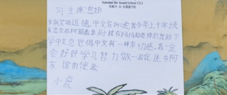 习近平主席在给这些孩子的复信中写道,“欢迎你们来中国看熊猫、登长城,长大后到中国读大学,也欢迎更多的阿联酋青少年学习中文、了解中国,同中国的青少年交流交心、互学互鉴,把友谊的种子根植在心里,为开创中阿关系更加美好的明天贡献力量”。