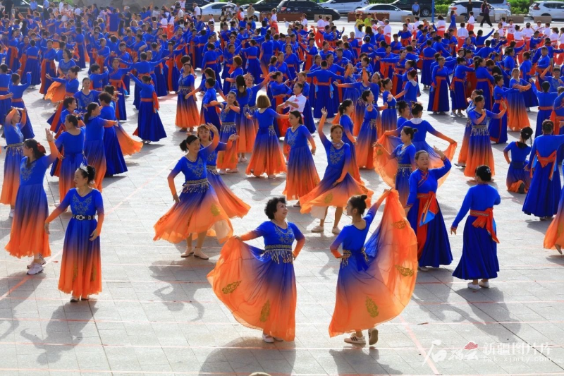 “丝路山水同根同心·壮美巴州同梦同行”巴音郭楞蒙古自治州千人广场秀活动。薛兵摄