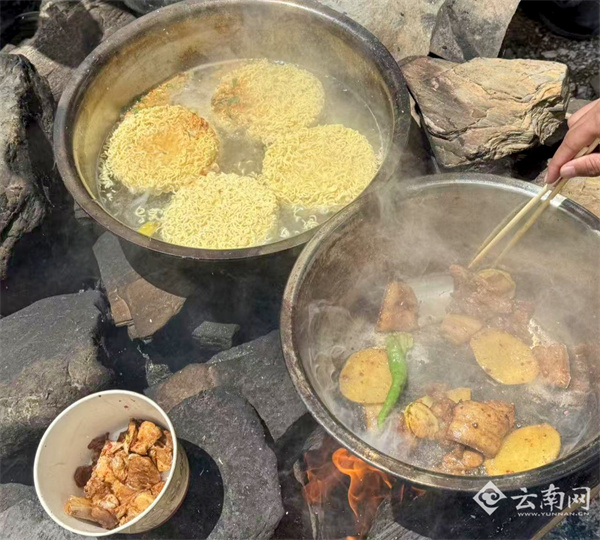车辆驶入东旺乡地界,满目皆是连绵不绝的陡峭山体,执勤点就嵌在这片灰色山体中。每日清晨7点,队员们便跟随牧民上山,午饭常是就地取材,用雪水泡方便面就着石板烤肉,直到日落,最后一位采挖者收工才返回。