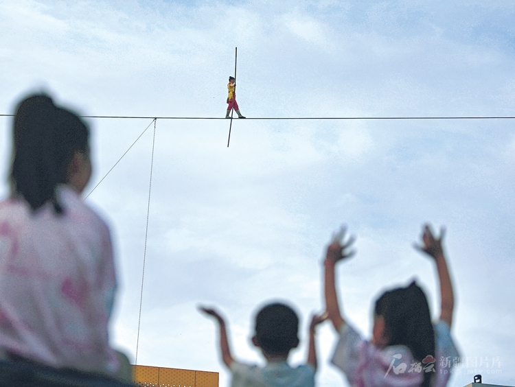 6月6日,演员在乌鲁木齐杉杉奥特莱斯购物广场表演高空达瓦孜。天山网-新疆日报记者邹懿 摄
