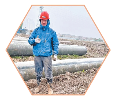 浙江大学学生孙逸农在车辆段工程现场。受访者供图
