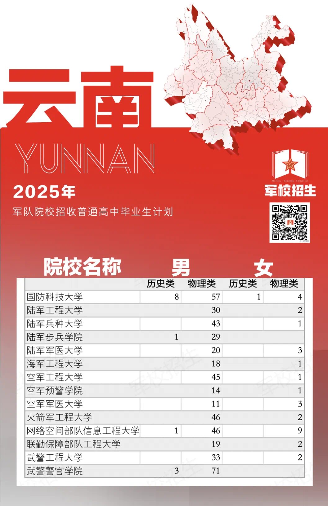 14所军校计划在云南招收527人