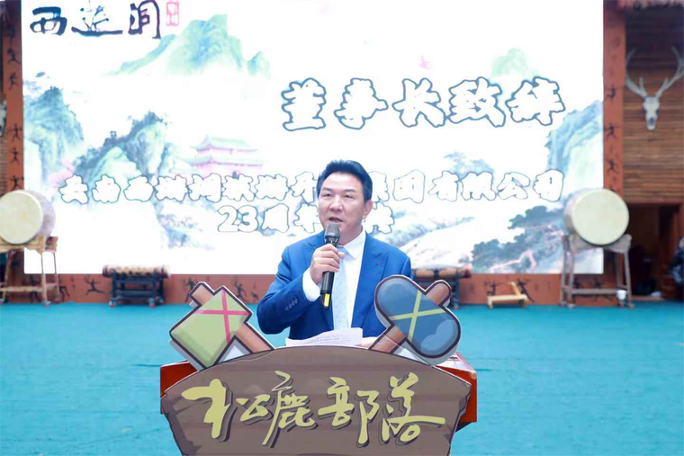 庆典活动现场气氛热烈欢快,精彩纷呈。董事长杨学银致辞,回顾了集团23年的创业历程。从2002年对“仙桥洞”及2021年对“松鹿部落”的开拓,到如今建成“松鹿部落”和“西游洞”两大知名风景区,集团凭借“自力更生、奋发图强”的精神,在旅游开发的道路上砥砺前行。如今,景区已成为云南省的著名商标。展望未来,集团将坚持新发展理念,持续投入建设,挖掘文化内涵,提升服务质量,加强生态保护和安全管理,注重与周边社区和谐发展,助力乡村振兴和共同富裕。