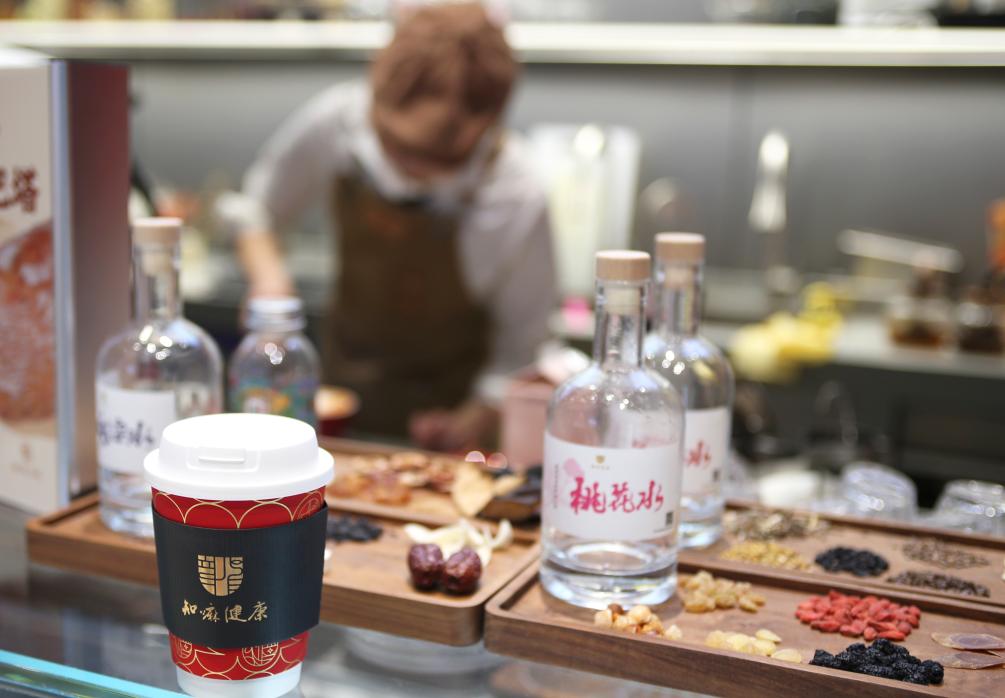 这是2025年2月25日在同仁堂知嘛健康北京正大店内拍摄的中草药草本饮品。新华社记者 朱唯希 摄