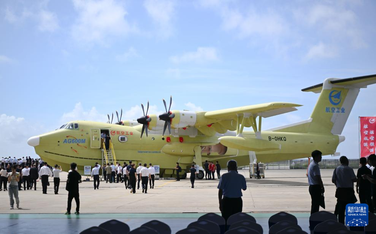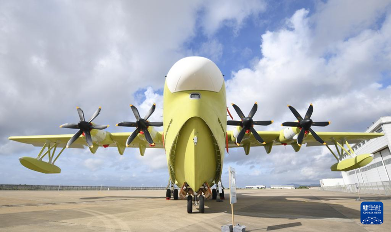 6月11日,在珠海中航通飞华南飞机工业有限公司,现场展示的批量生产的首架AG600飞机。 新华社记者 邓华 摄