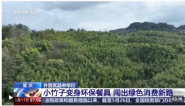 可别小看这一丛丛小竹子,用它们制作一次性餐具可以自然降解,凭借绿色优势,企业每年有近4亿套竹餐具销往全球。