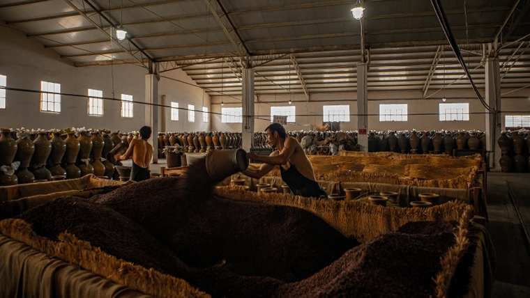 云南得天独厚的生态环境与优质原料是“云知梦”口感独特的关键。酒品精选当地红高粱,采用天然锶泉水浸泡蒸煮,引入单一菌种糖化,保留高粱最纯粹、天然的香气。经过“泡粮”“蒸煮”“下曲”完成糖化的高粱被装入特制土坛,历经840小时自然发酵后送上甑蒸馏,得到一滴滴纯粹的高粱酒液。新酒仍需静置于土坛中,经历两年以上的窖藏,使酒体柔和,风味沉稳,完成最后一轮升华——去杂、增香、养性。
