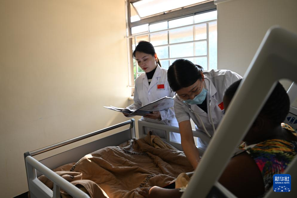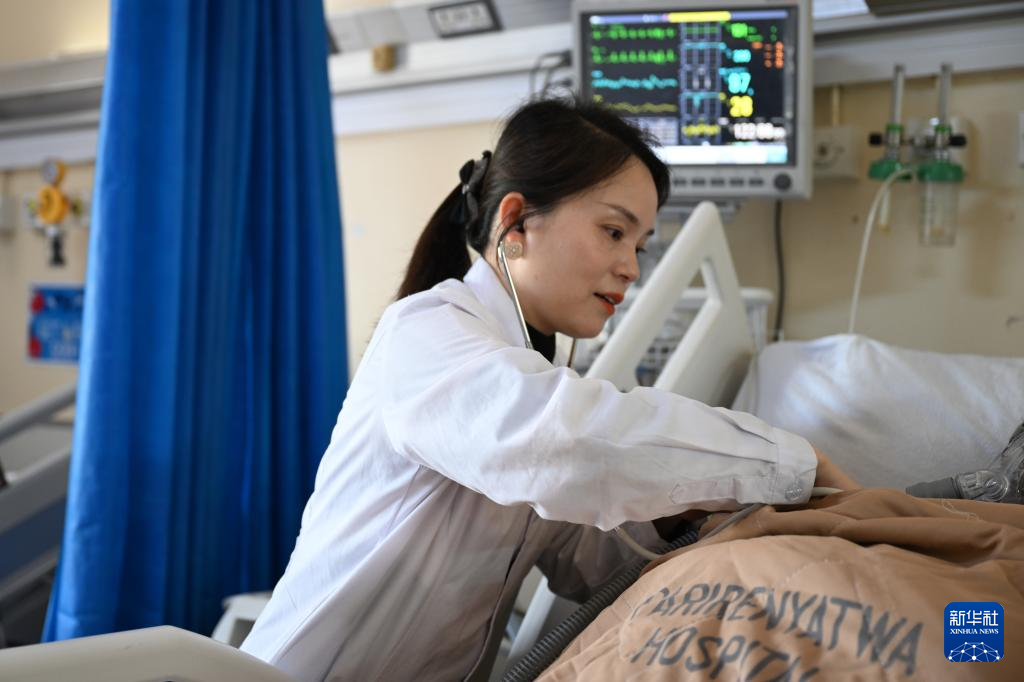 6月10日,在位于津巴布韦首都哈拉雷的帕里雷尼亚图瓦医院,第22批中国援津医疗队队员为病人检查身体。新华社记者 许正 摄