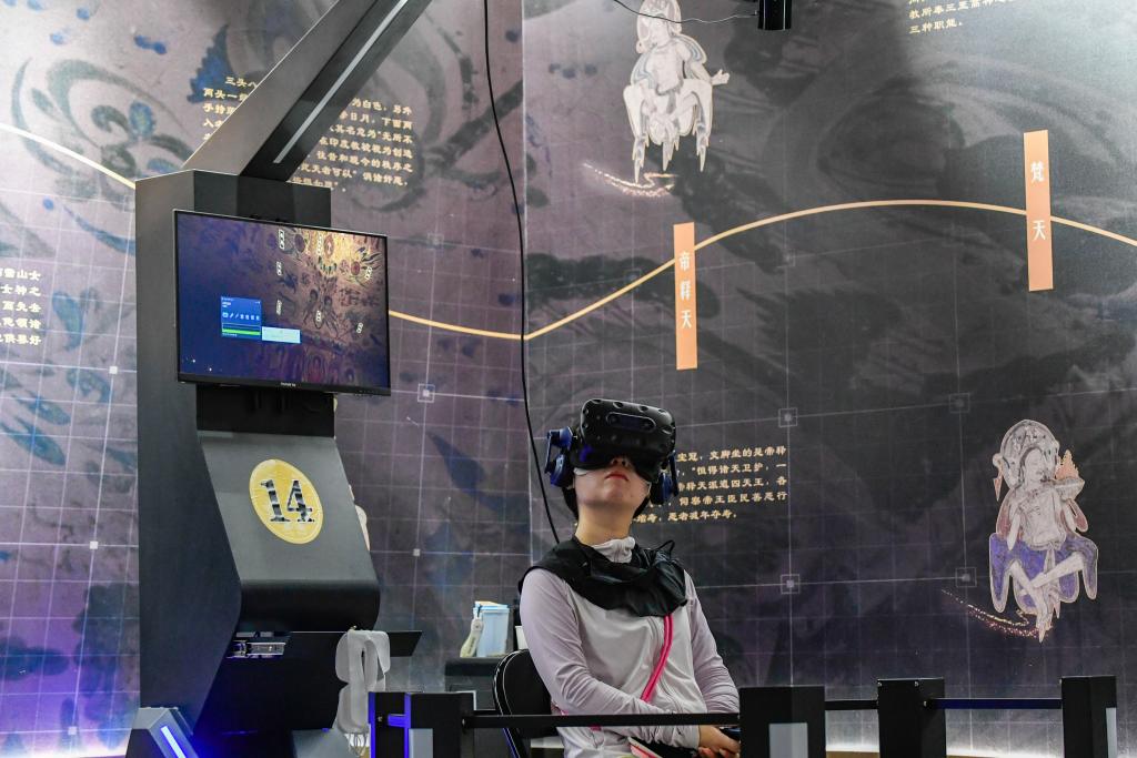 5月17日,游客通过VR设备游览太原北齐壁画博物馆。新华社记者 杨晨光 摄