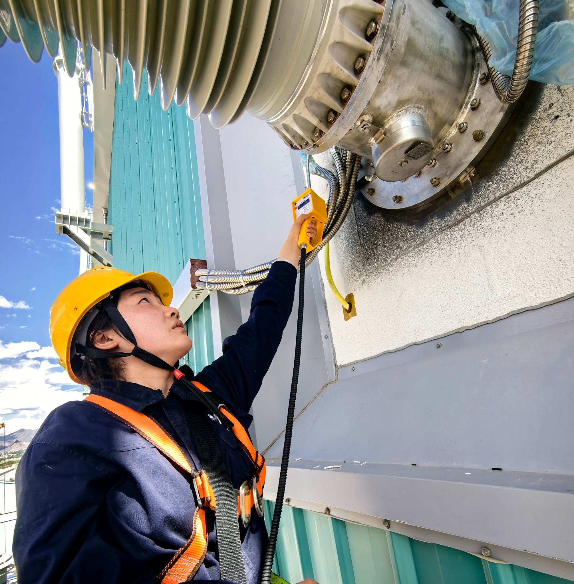 螺栓力矩检测需要逐颗核对,她趴在阀塔支架上,后背被铁板烤得发烫,手指被螺栓划出道道血痕。“这里的连接感觉有些微妙的松动,你们在安装的时候有没有遇到什么特殊情况?”俞增文一边仔细检查,一边向技术人员询问,她一直坚守在设备旁,详细记录各项数据变化。连续在换流阀内爬上爬下4个多小时后,突然一阵头晕目眩袭来 —— 是高原反应又犯了,她扶着支架缓了缓,继续低头检查,直到把2万多颗螺栓全部测完,当夕阳把她的影子投在阀塔上时,小张递来一瓶水:“俞工,你真厉害啊!”