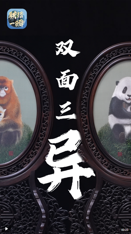 一面绣的是大熊猫,另一面却是金丝猴?针法、颜色、图案全都不一样。联播一瞬带你了解什么是双面三异绣,一针一线都藏着匠心与巧思。