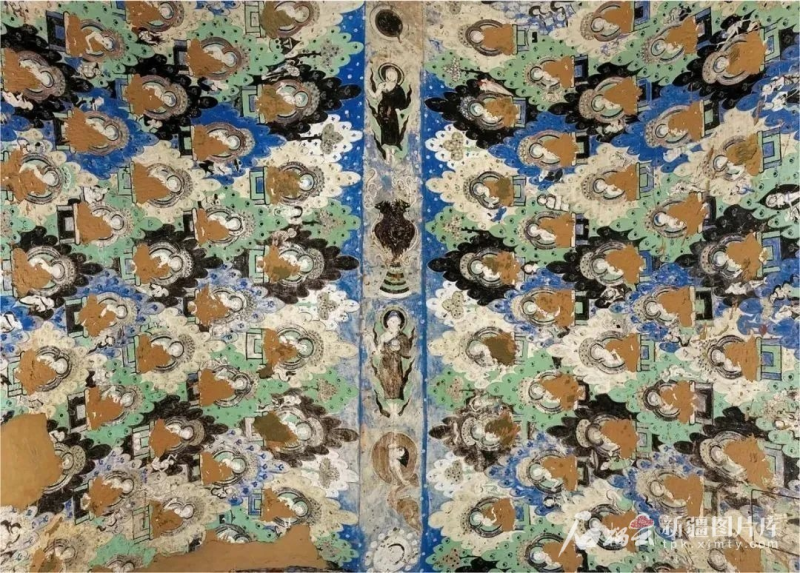 敦煌莫高窟203窟,两侧墙壁上排列密集的小佛像,与龟兹壁画异曲同工。资料图。