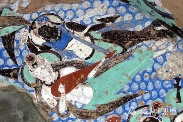 克孜尔石窟壁画中的伎乐天。资料图