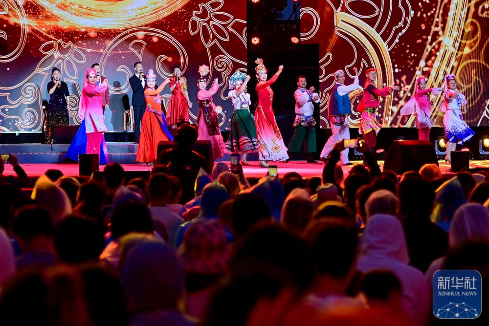 中国文联文艺志愿服务团队“送欢乐下基层”文艺演出在新疆伊犁哈萨克自治州霍城县香水体育公园举行(6月14日摄)。