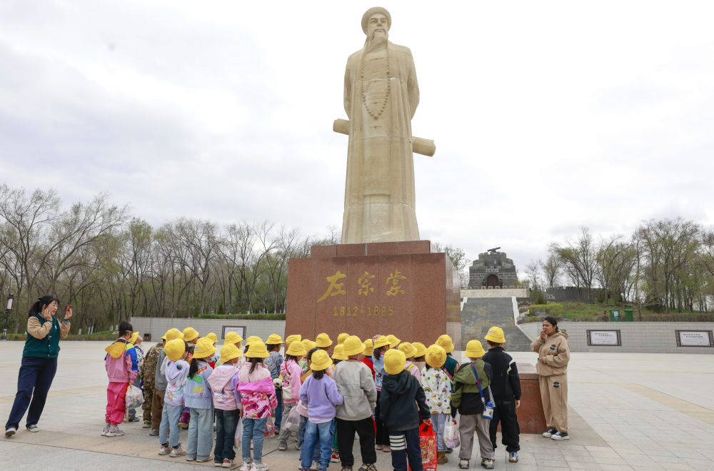 100多年后,乌鲁木齐总体国家安全观主题公园内,巨型左宗棠汉白玉雕像巍然屹立,目光深邃。游人至此,感佩中华儿女誓死守护祖国山河的震撼力量。