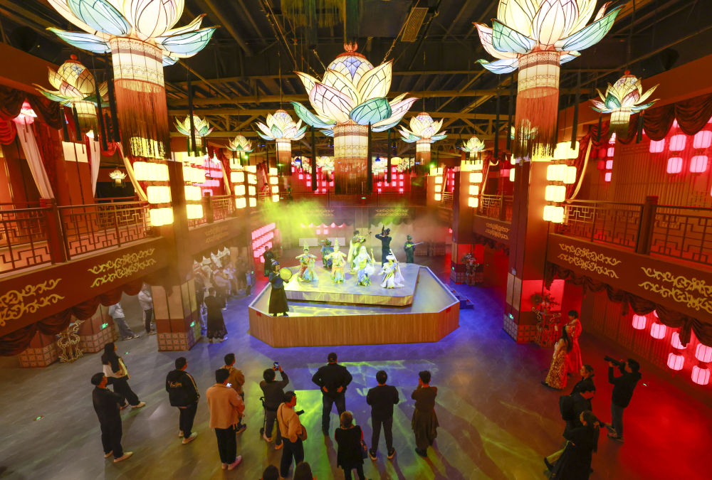 在乌鲁木齐“丝路有戏”园区内,游客正在观看演出(2025年4月18日摄)。新华社记者 王菲 摄