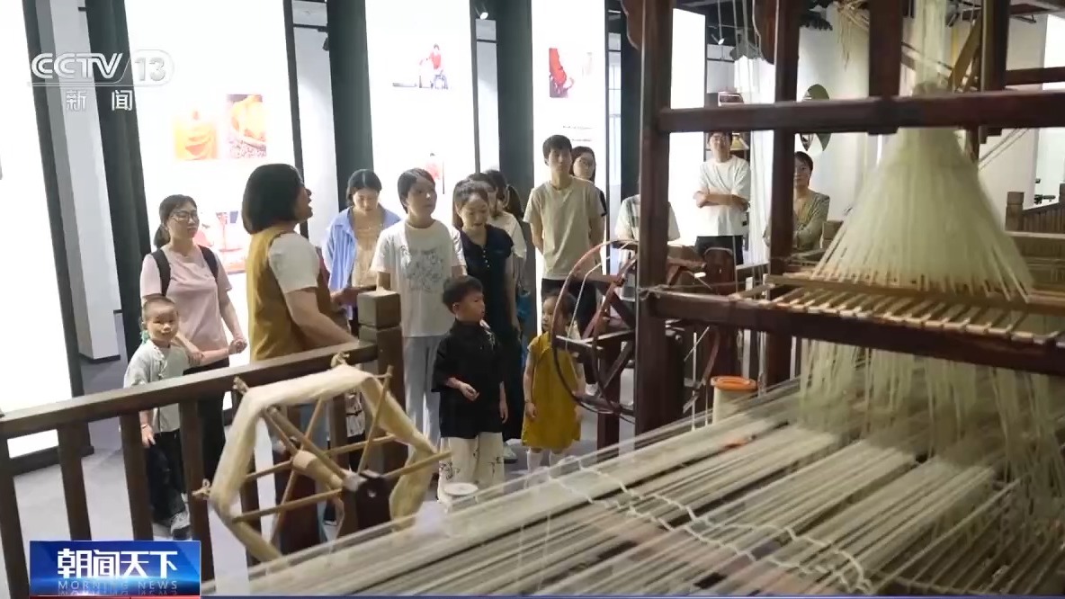 在浙江湖州的双林绫绢织造技艺传承馆内,郑依霏正带领参观者开启一场穿越千年的丝织艺术之旅。大家亲手触摸传统绢织机,零距离体验古老丝织技艺。