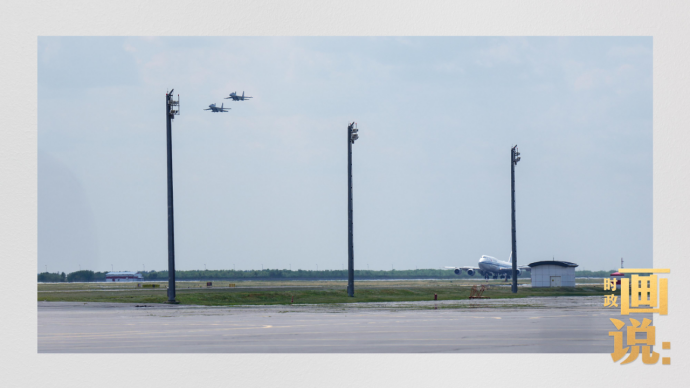 习近平主席专机进入哈萨克斯坦领空后,哈萨克斯坦空军战机升空护航。