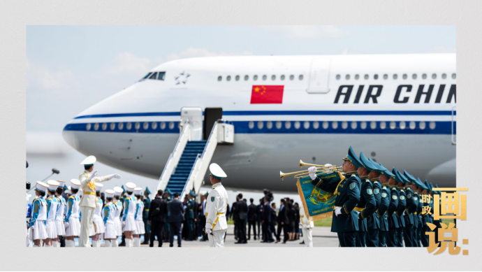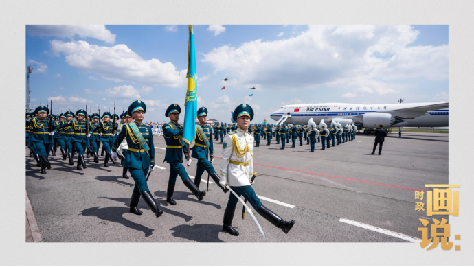 当地时间6月16日中午,国家主席习近平乘专机抵达阿斯塔纳,出席第二届中国—中亚峰会。