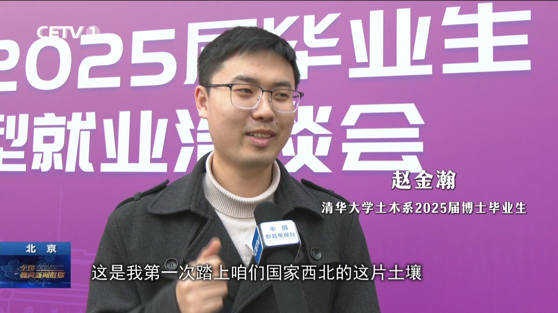 清华土木系2025届博士生毕业生赵金瀚:我之前就报名了去青海的这个就业导向的“地域行”实践。我第一次踏上咱们国家西北的这片土壤,就感受还是非常不一样的。清华大学土木水学院也有非常多优秀的校友,他们在毕业之后选择扎根基层,扎根西部,清华人应该有这种情怀和决心,我觉得对我影响非常大,打算到祖国的边疆新疆生产建设兵团工作。我希望能够把自己所学的知识应用到无限地为人民的服务中去。