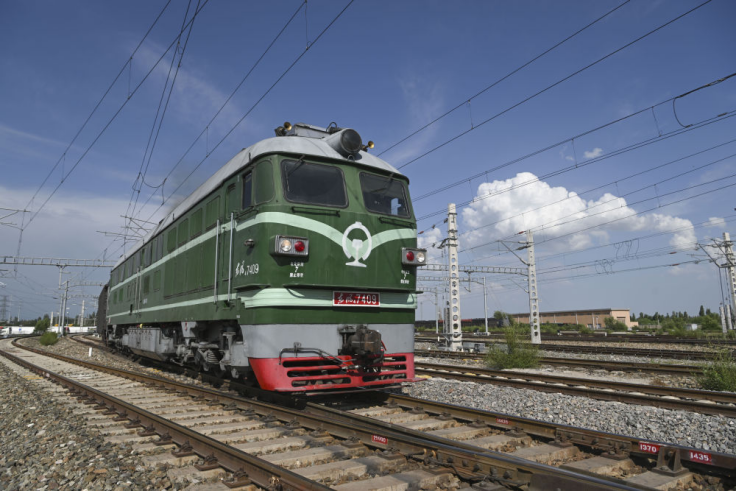 一列开往阿拉木图的班列从新疆霍尔果斯站驶出(2025年6月16日摄)。新华社记者 胡虎虎 摄