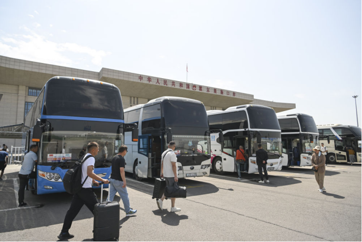 2025年6月16日,旅客在新疆霍尔果斯口岸乘国际大巴前往哈萨克斯坦。新华社记者 胡虎虎 摄