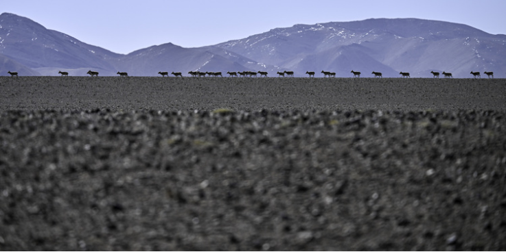 Tibetan antelopes are on migration in Changtang National Nature Reserve in southwest China's Xizang Autonomous Region, June 9, 2025. (Xinhua/Tenzing Nima Qadhup)