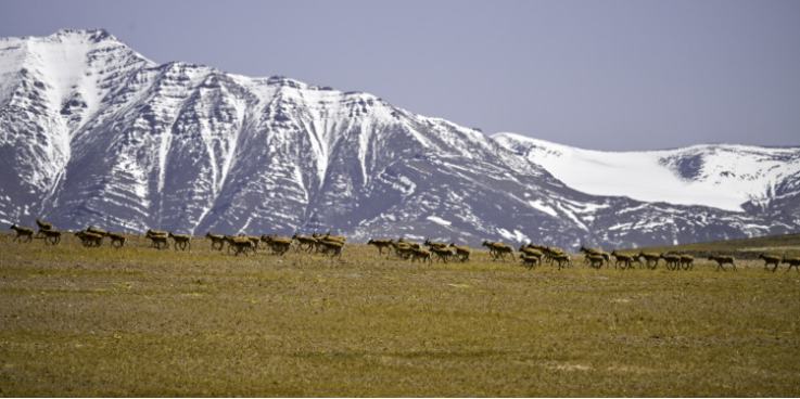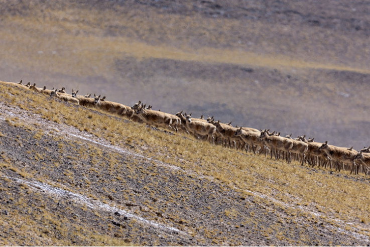 Tibetan antelopes are on migration in Changtang National Nature Reserve in southwest China's Xizang Autonomous Region, June 8, 2025. (Xinhua/Liu Jinhai)