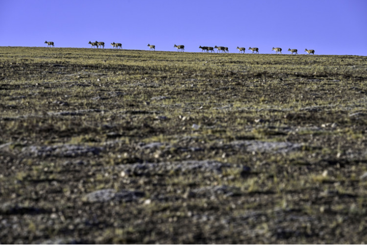 Tibetan antelopes are on migration in Changtang National Nature Reserve in southwest China's Xizang Autonomous Region, June 10, 2025. (Xinhua/Jiang Fan)