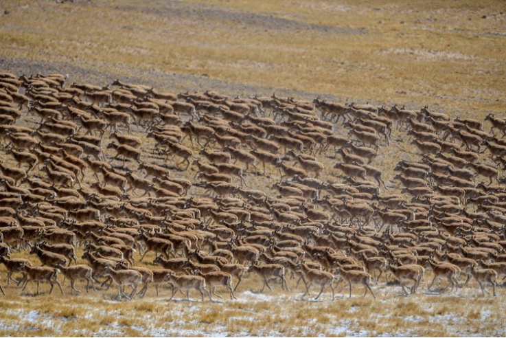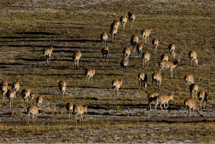 The number of Tibetan antelopes in Xizang has now increased to more than 300,000, and their protection status has been downgraded from "endangered" to "near threatened," according to data from the region's ecology and environment department.