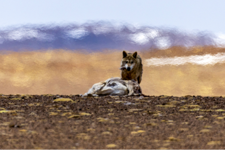 A Tibetan antelope is killed by a wolf in Changtang National Nature Reserve in southwest China's Xizang Autonomous Region, June 8, 2025. (Xinhua/Jiang Fan)