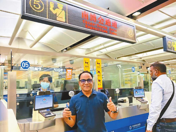 6月14日,参加第9届南博会的首批2名阿富汗参展商在昆明机场通过南博会专用通道完成入境边检手续办理。