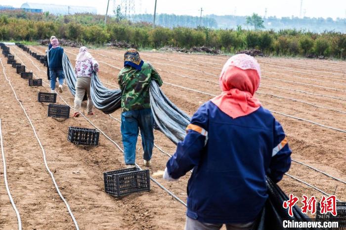走进位于夏店镇岸底村的山西韩创农业科技有限公司党参育苗基地,工人们正忙着为栽种完成的育苗地搭设遮阳网,从而减少阳光直晒,保持土壤水分。