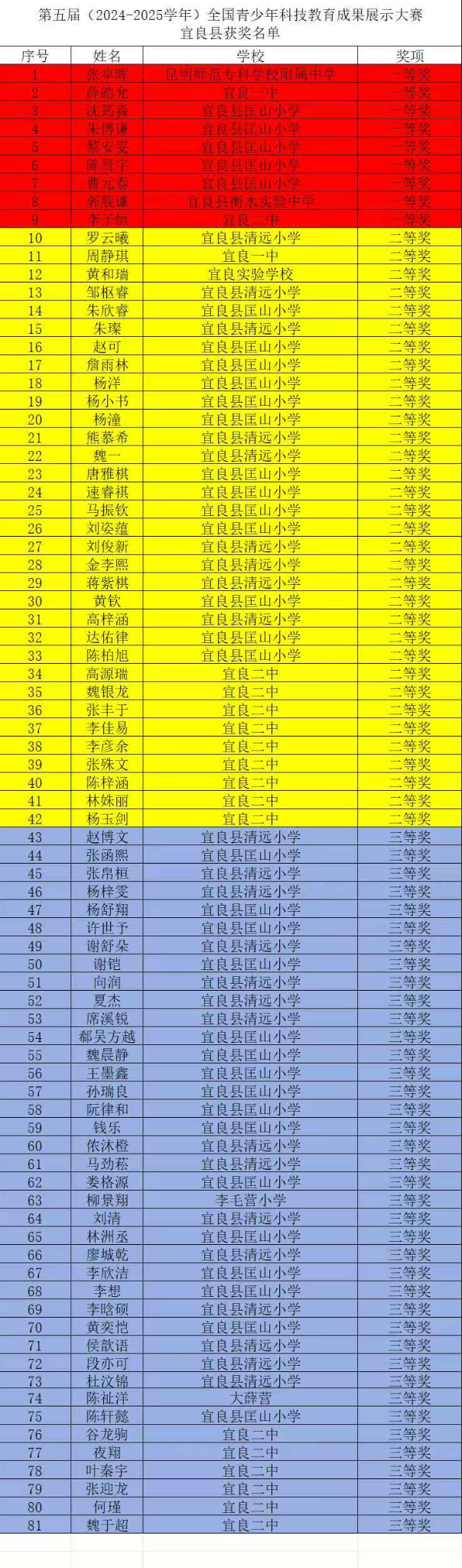 近日,宜良县在第五届(2024—2025学年)全国青少年科技教育成果展示大赛中荣获一等奖9个、二等奖24个、三等奖33个,展现了宜良县青少年深厚扎实的科技素养与勇于探索的创新精神。
