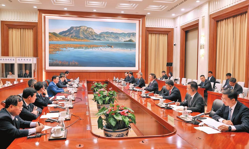 6月19日,省委副书记、省长王予波在昆明会见来滇出席第9届南博会暨第29届昆交会的越南副总理陈红河一行。本报记者 顾彬 摄