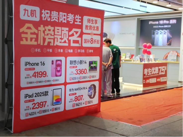 贵阳市云岩区某商场一家数码产品专卖店的高考生购物优惠展板。新华社记者郑明鸿 摄