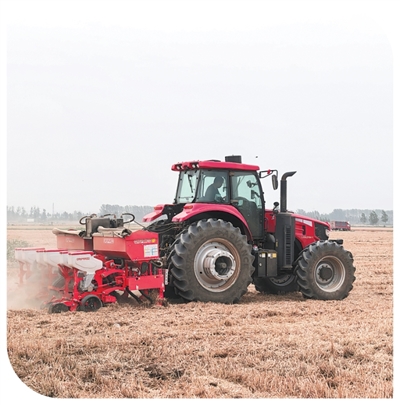 “就拿今年新买的气吸式精量播种机来说,这台机器行驶时速为10至15公里,气吸负压再搭配北斗导航系统,一穴一粒,误差不超过1厘米,能保证苗齐、苗匀、苗壮。”吕耕珍说。