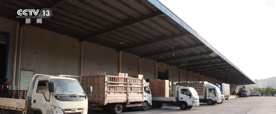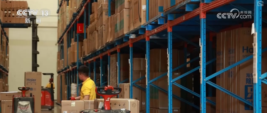 山东济南最大的一个家电物流中心仓,负责当地97个县域的家电物流配送工作。当记者来到这里时,正赶上这里的作业高峰,十几辆物流车排成一列,等待装货发车。