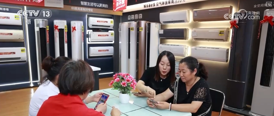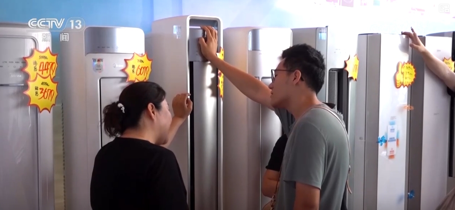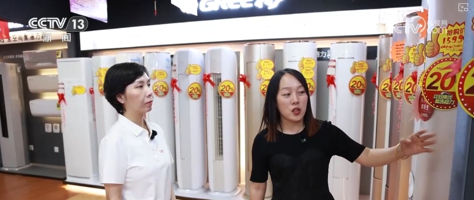 店主介绍,当前消费者“以旧换新”需求旺盛。6月份以来,店内销售量环比增长了33%,空调、冰箱等清凉家电成为消费主力。